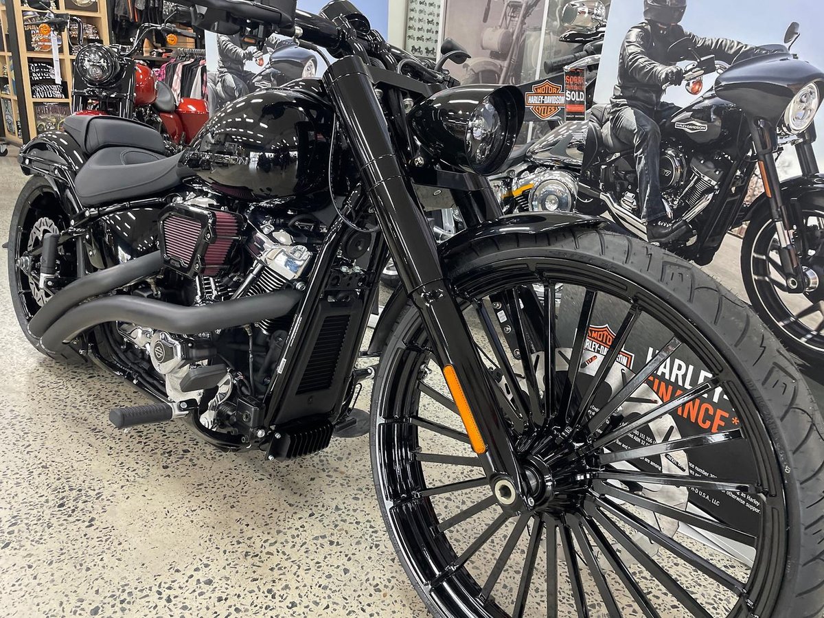 With its wide rear tire, aggressive chopper rake, and eye-catching paint and graphics, this 2025 Model Breakout 117" is more than just a ride — it’s a full-blown statement.