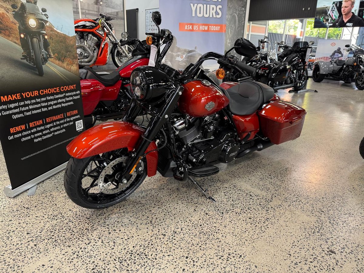 We would like to offer you this New 2025 Model Road King Special in Whiskey Fire in store and ready for immediate delivery.