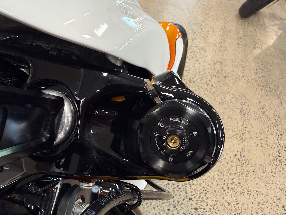 - Rear Suspension: Hidden piston free coil-over monoshock; Hydraulic preload adjustment (External hand adjustment knob)